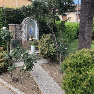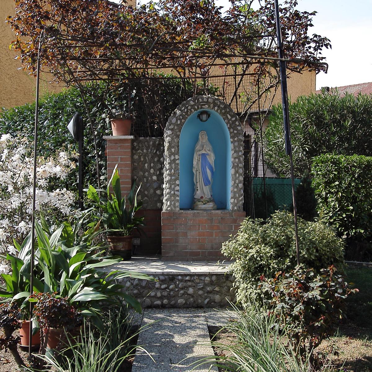 È l’ultimo arrivato dei capitelli del paese. La sua realizzazione si deve al desiderio delle suore della Scuola materna di possedere in giardino una Grotta di Lourdes, per porvi la Madonna in ceramica che da tanti anni si trovava nel locale di ingresso della Scuola materna stessa.
