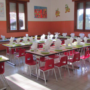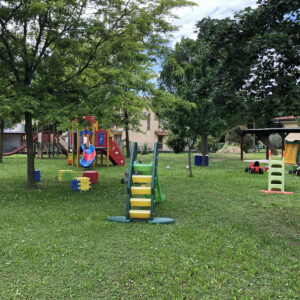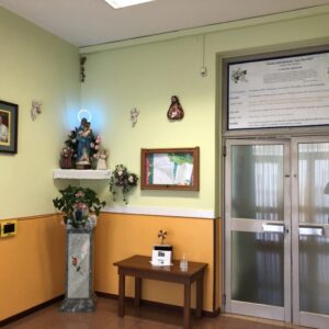 Il posto nell’ingresso dell’Asilo lasciato libero dalla statua della Madonna, è stato preso da una preziosa statuetta raffigurante una Madonna col Bambino, vecchia di 150 anni, donata recentemente al parroco don Alfredo Neri dalle suore di Maria Bambina di Feltre.