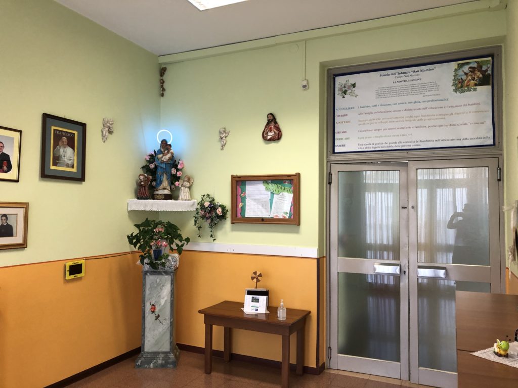 La scuola materna è nata per iniziativa del parroco e con la collaborazione della comunità parrocchiale. Costruita negli anni sessanta su un terreno del benefattore Dr. Silvio Pauro, ha iniziato la sua attività con le suore dell’ordine di San Francesco di Paola e dal 1971 ha proseguito con le suore della Congregazione “Cenacolo Cuore Addolorato e Immacolato di Maria”, arrivando ad accogliere fino ad ottanta bambini.